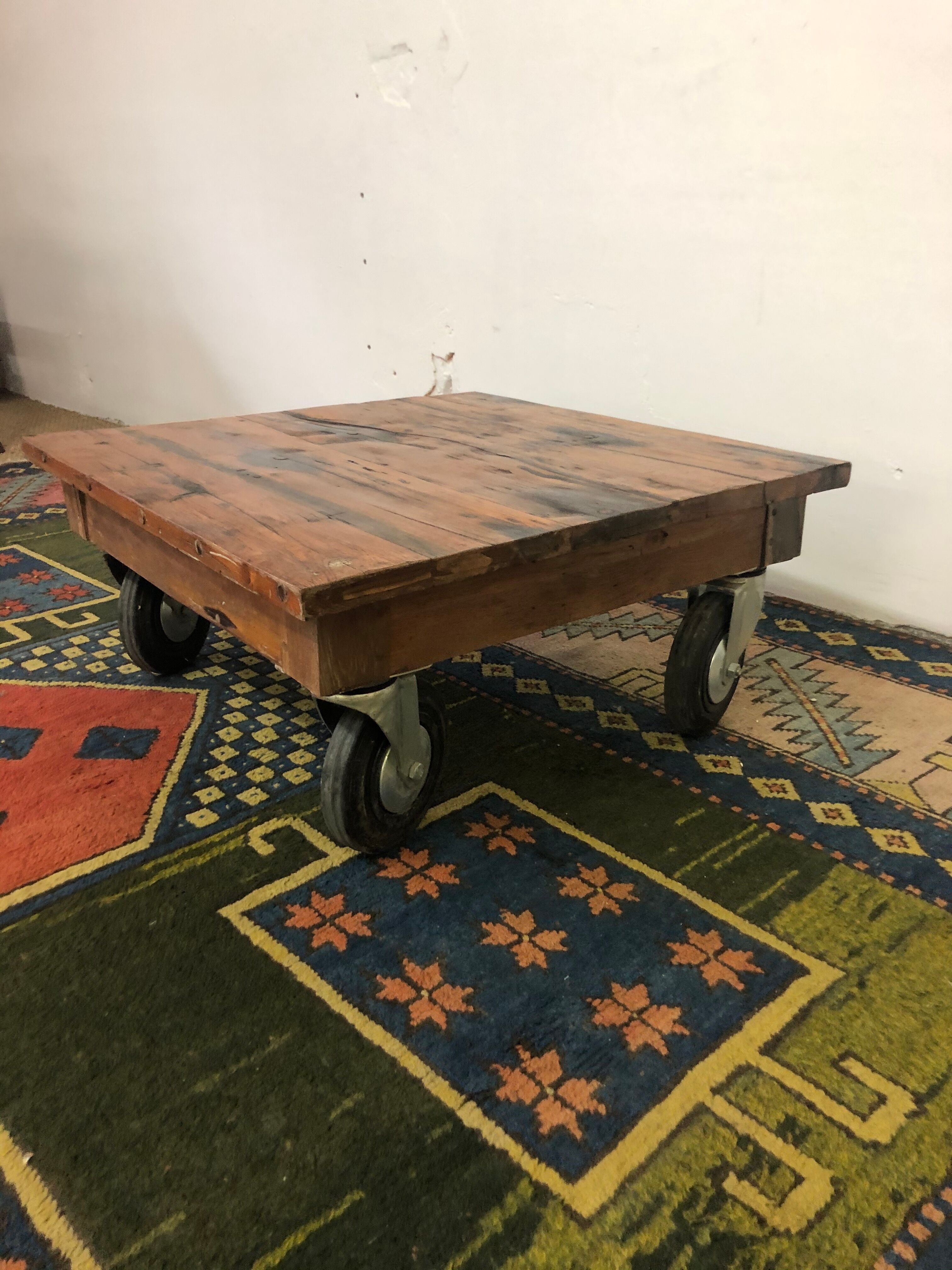 Caster wheels below round out the look, making it easy to move this table as needed. Traditional artistry combines with industrial styling and a unique distressed oak finish to captivate your room with rugged beauty. Weston home factory rectangle wood coffee table. Our solid wood industrial modern coffee table with iron wheels gives that idea a shape. Industrial coffee table with wheels (qty: